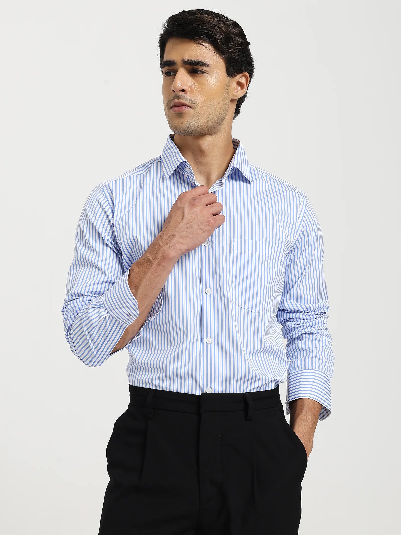 Inspired by the breezy elegance of the Italian coastline, the Capri Stripe Classic Shirt blends timeless style with enduring quality. Crafted from premium cotton in a fine poplin weave, its crisp blue-and-white pinstripes evoke effortless sophistication, whether you’re closing deals or dining by the harbour. Built to hold its shape, resist wear, and stay sharp for years, this shirt isn’t just made for the season, it’s made for your story.