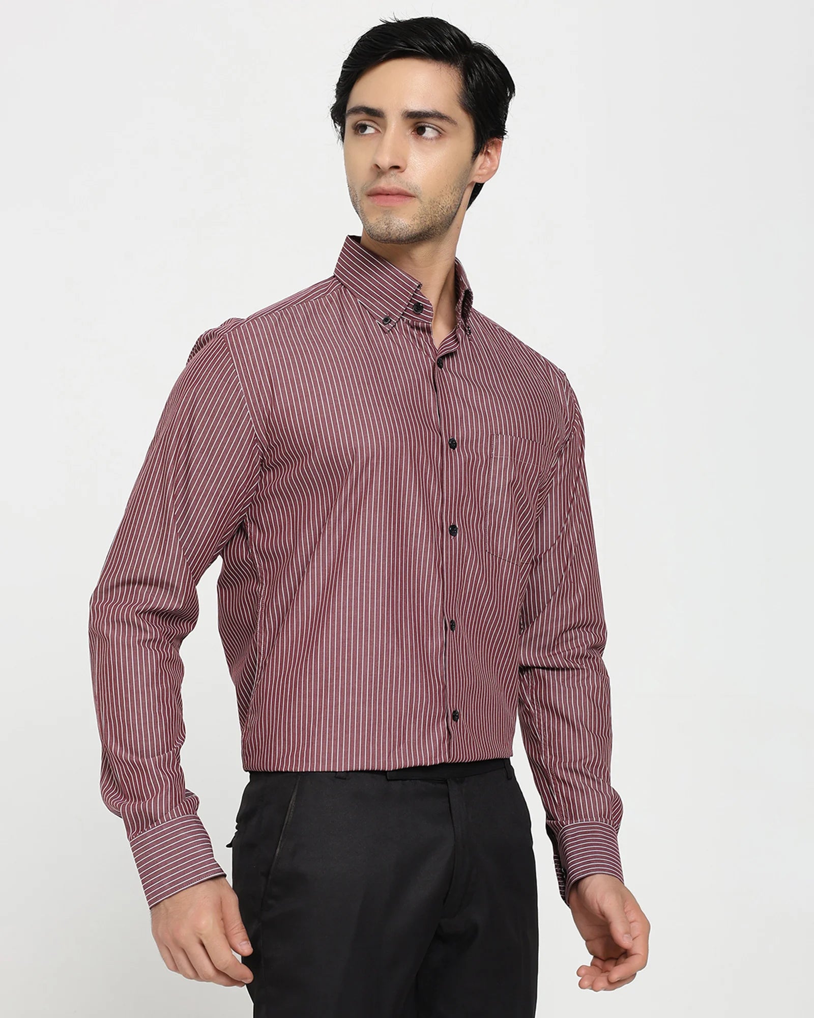A shirt that speaks of understated confidence. The Carmine Pinstripe Cotton Shirt brings together rich burgundy hues with clean white stripes, creating a balance of boldness and sophistication. Crafted from 100% premium cotton, it offers a naturally breathable fabric that keeps you comfortable through long meetings and after-hours engagements.