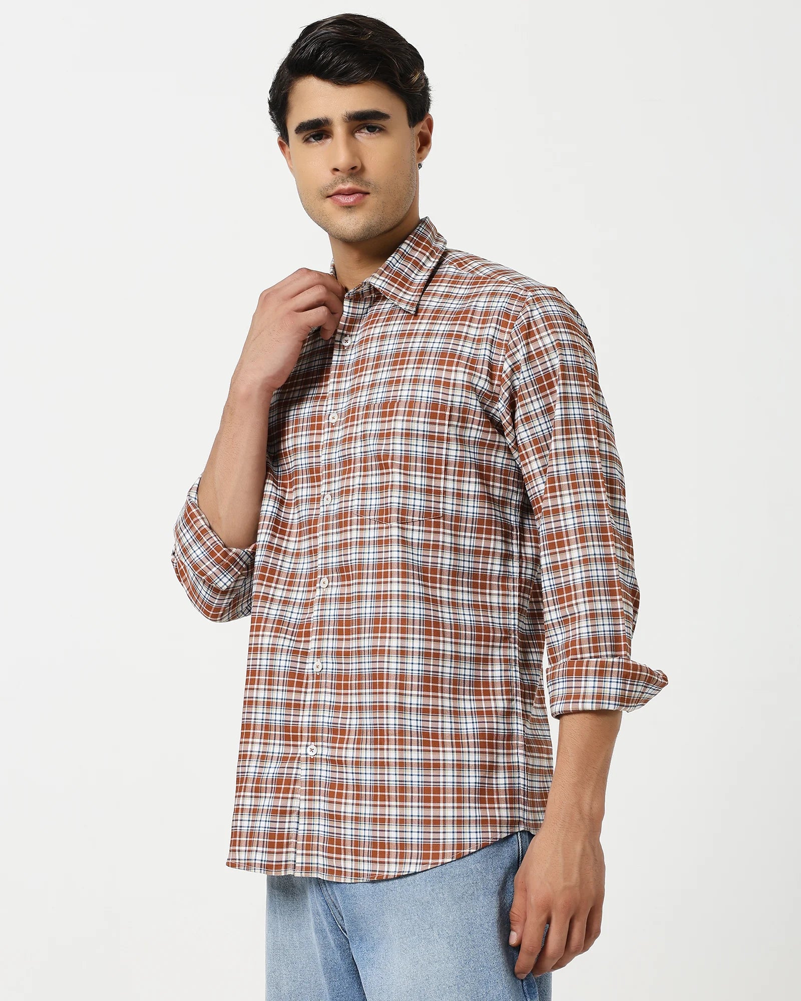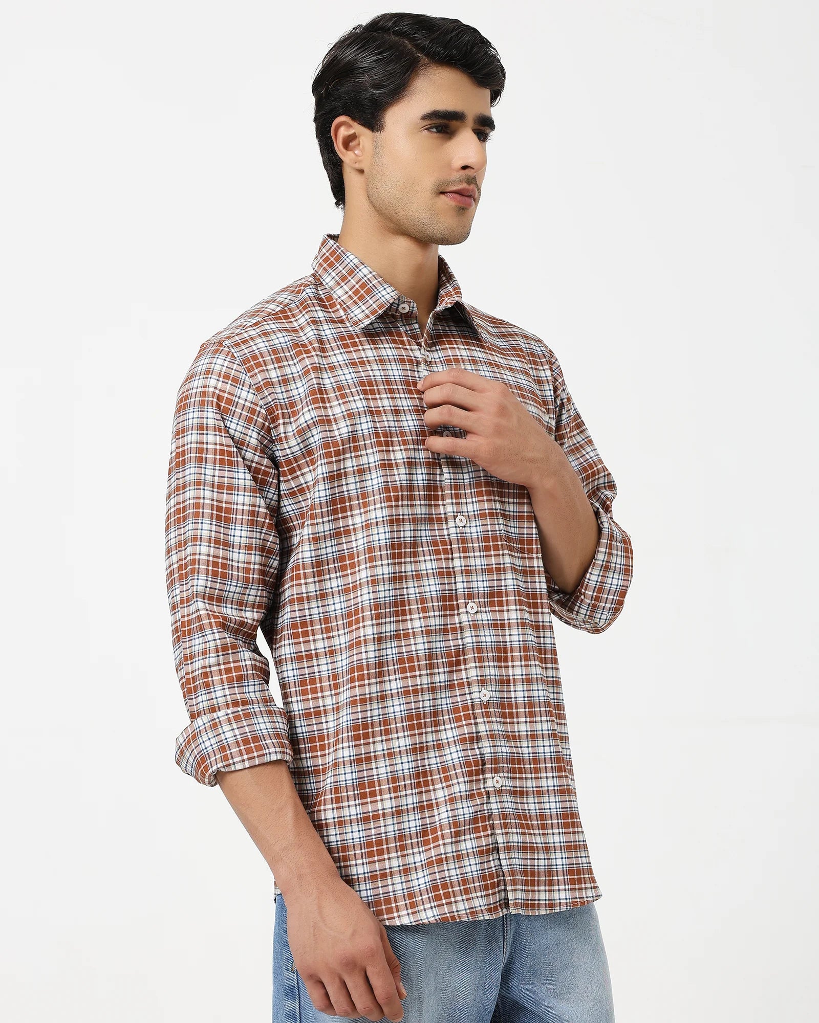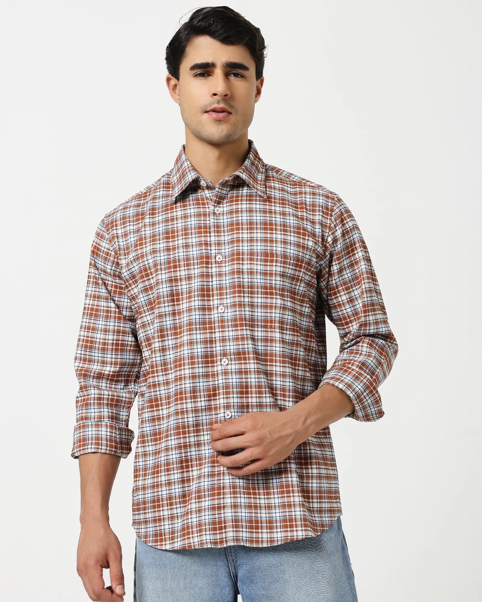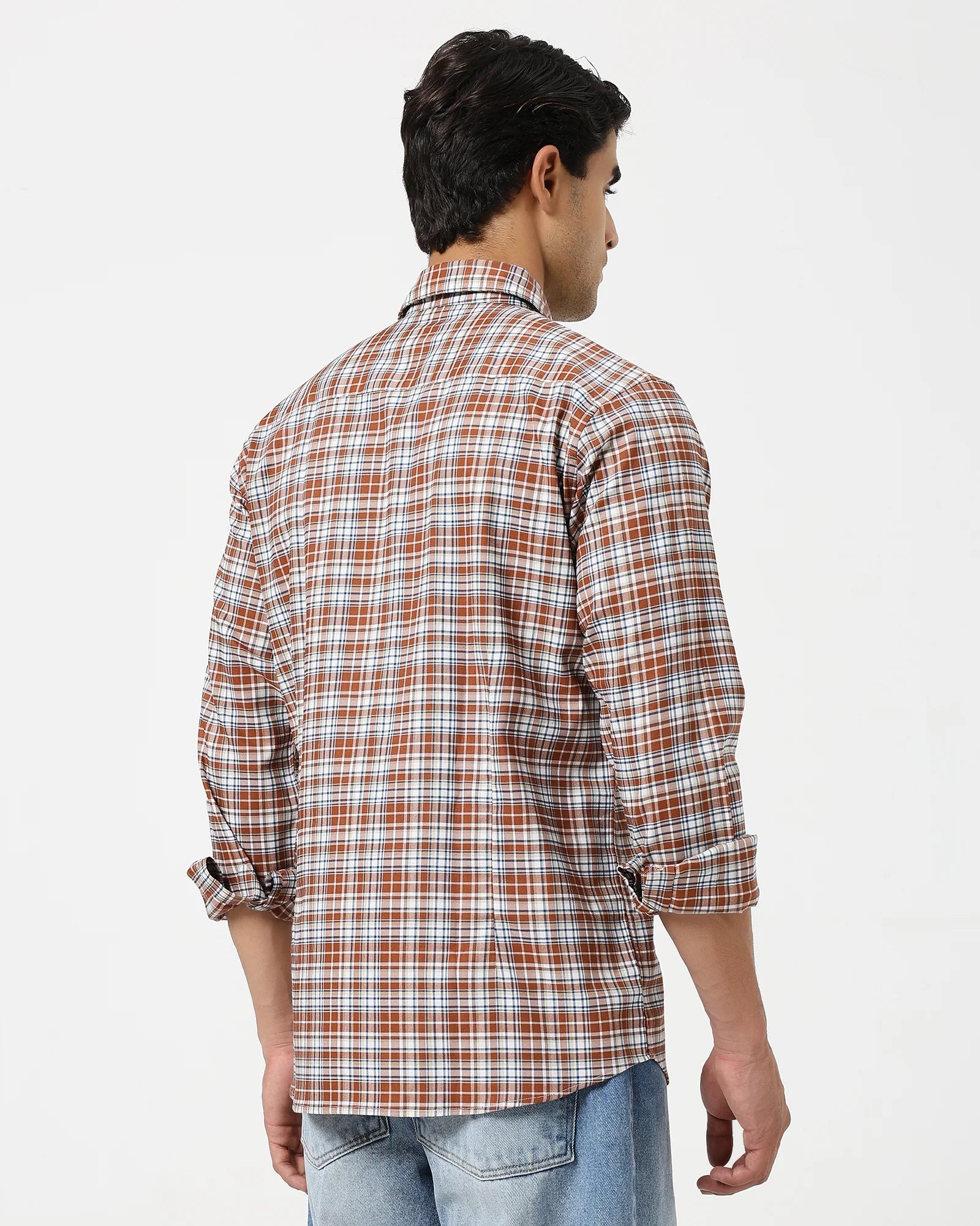 A shirt that feels like heritage stitched into fabric. The Heritage Countryside Twill Plaid Shirt carries the warmth of earthy rust tones balanced with cool blues and clean whites, creating a checkered pattern that feels both timeless and versatile.