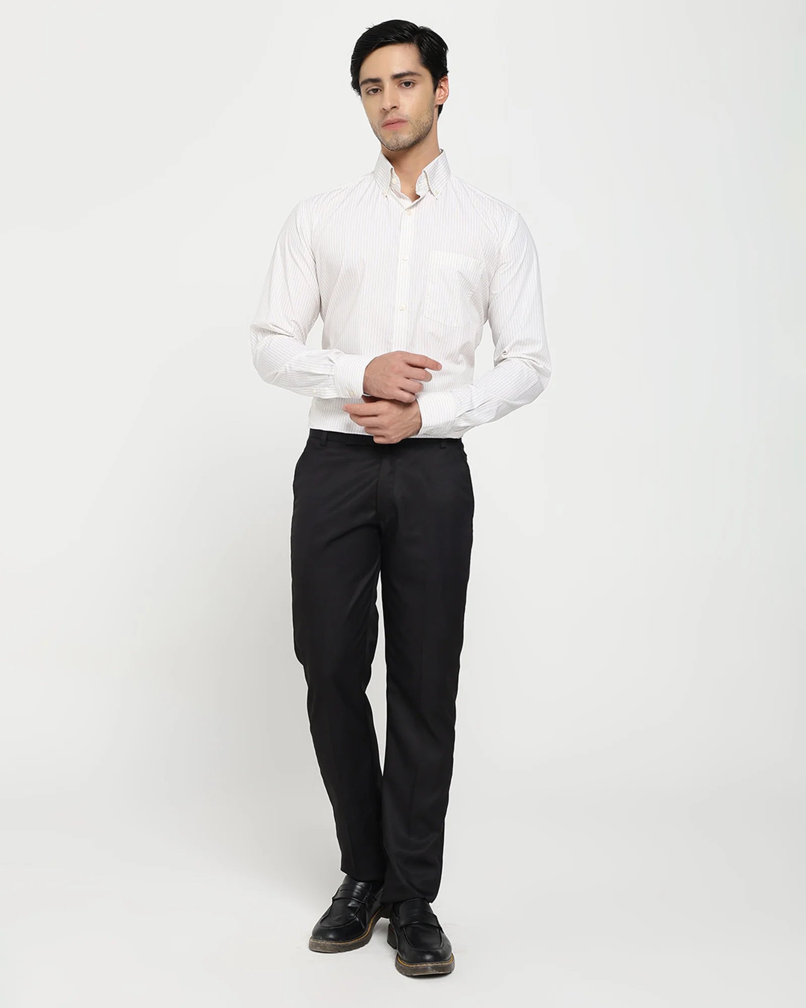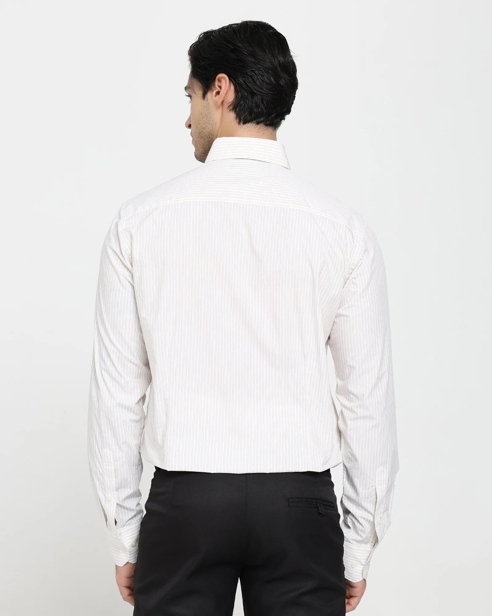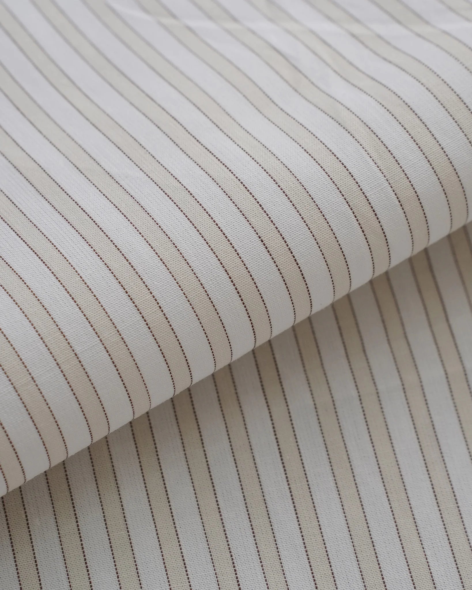 Elegance is often hidden in the smallest details. The Ivory Pinstripe Cotton Shirt is crafted from 100% pure cotton, woven to deliver a breathable yet refined texture. Its crisp ivory base is punctuated with understated pinstripes that carry a quiet authority, making it an effortless choice for boardroom days or weekend dinners. The button-down collar keeps your look structured while the fine weave ensures all-day comfort. A shirt that does not just fit into your wardrobe but elevates it.