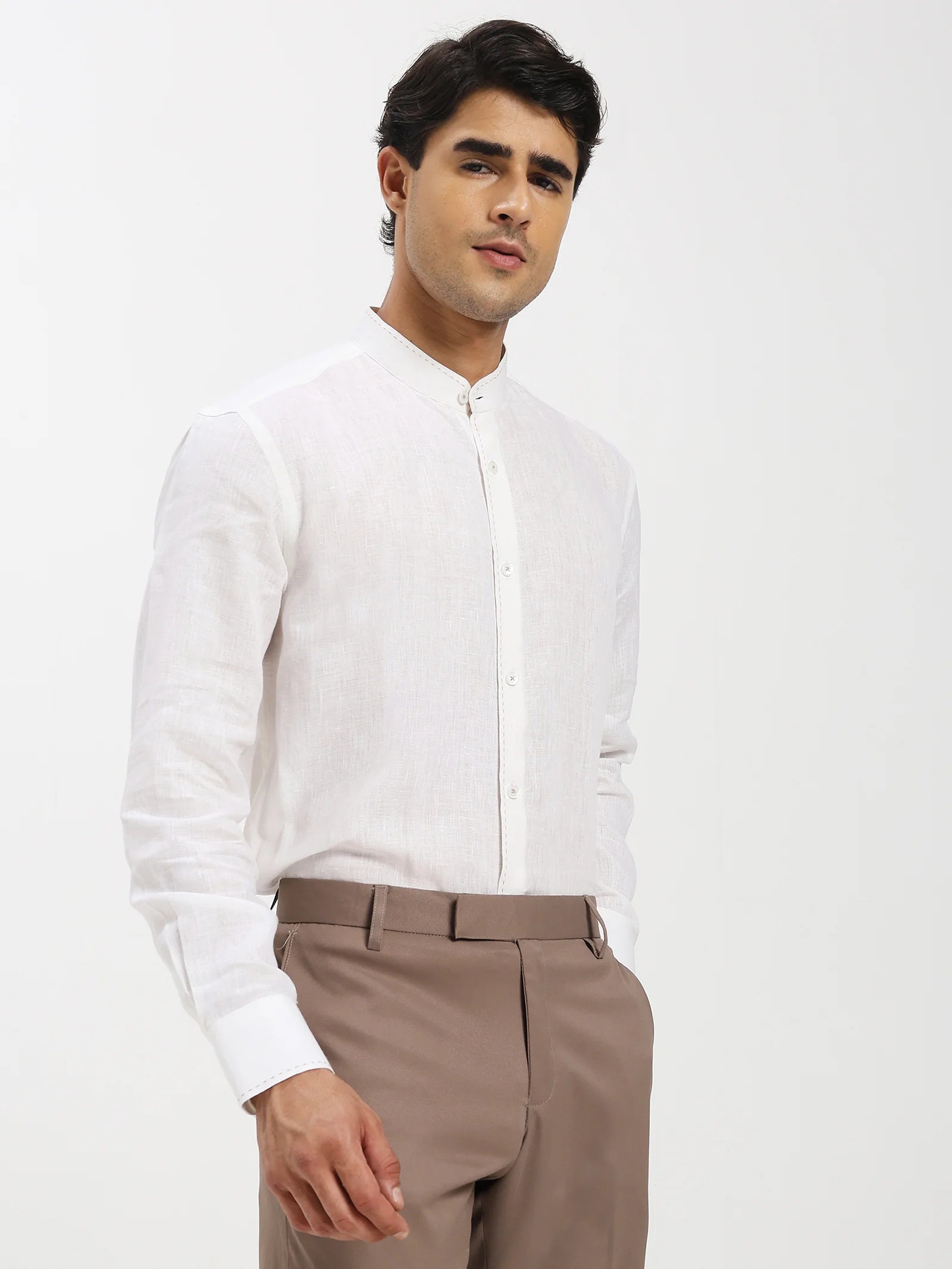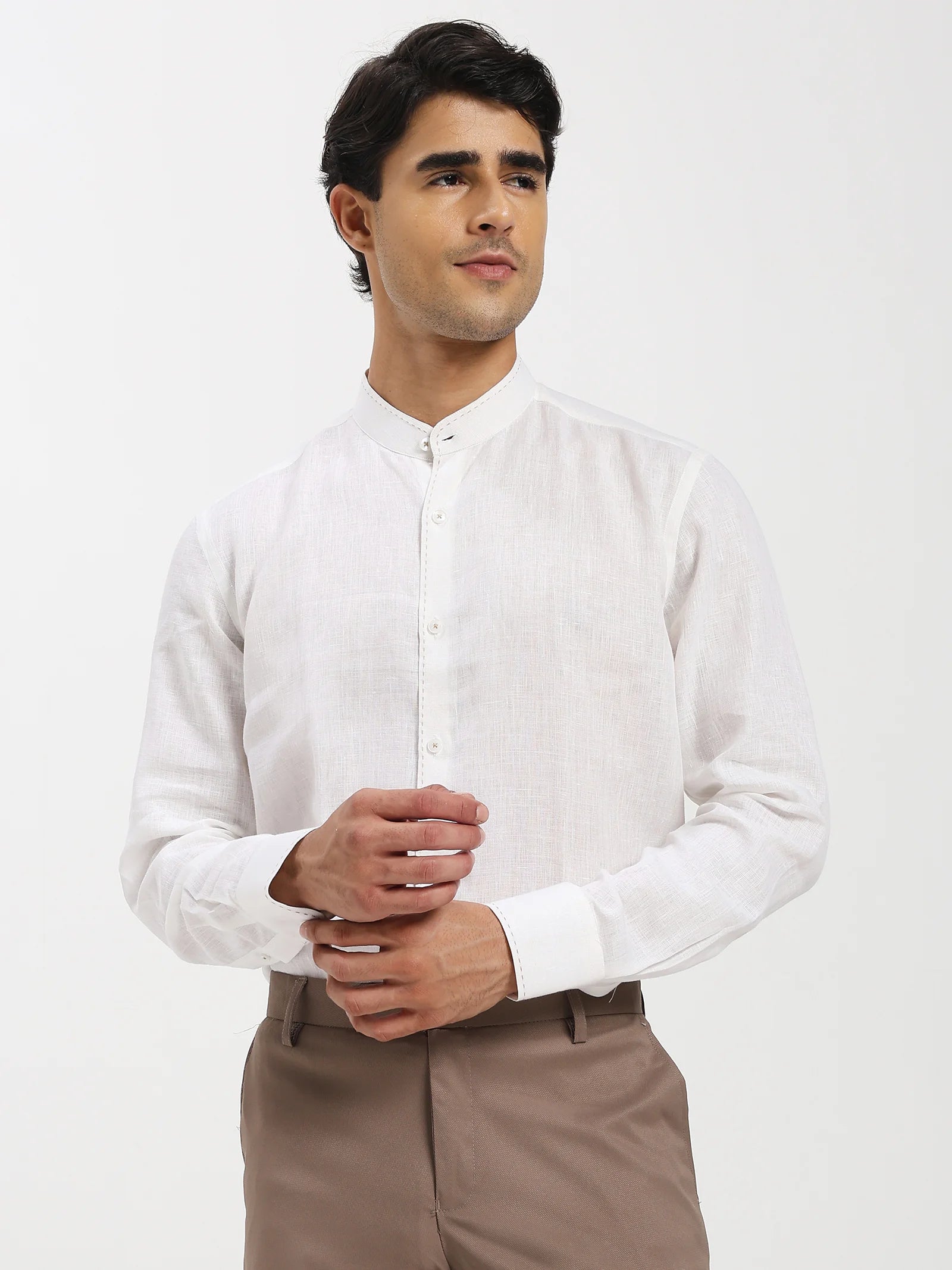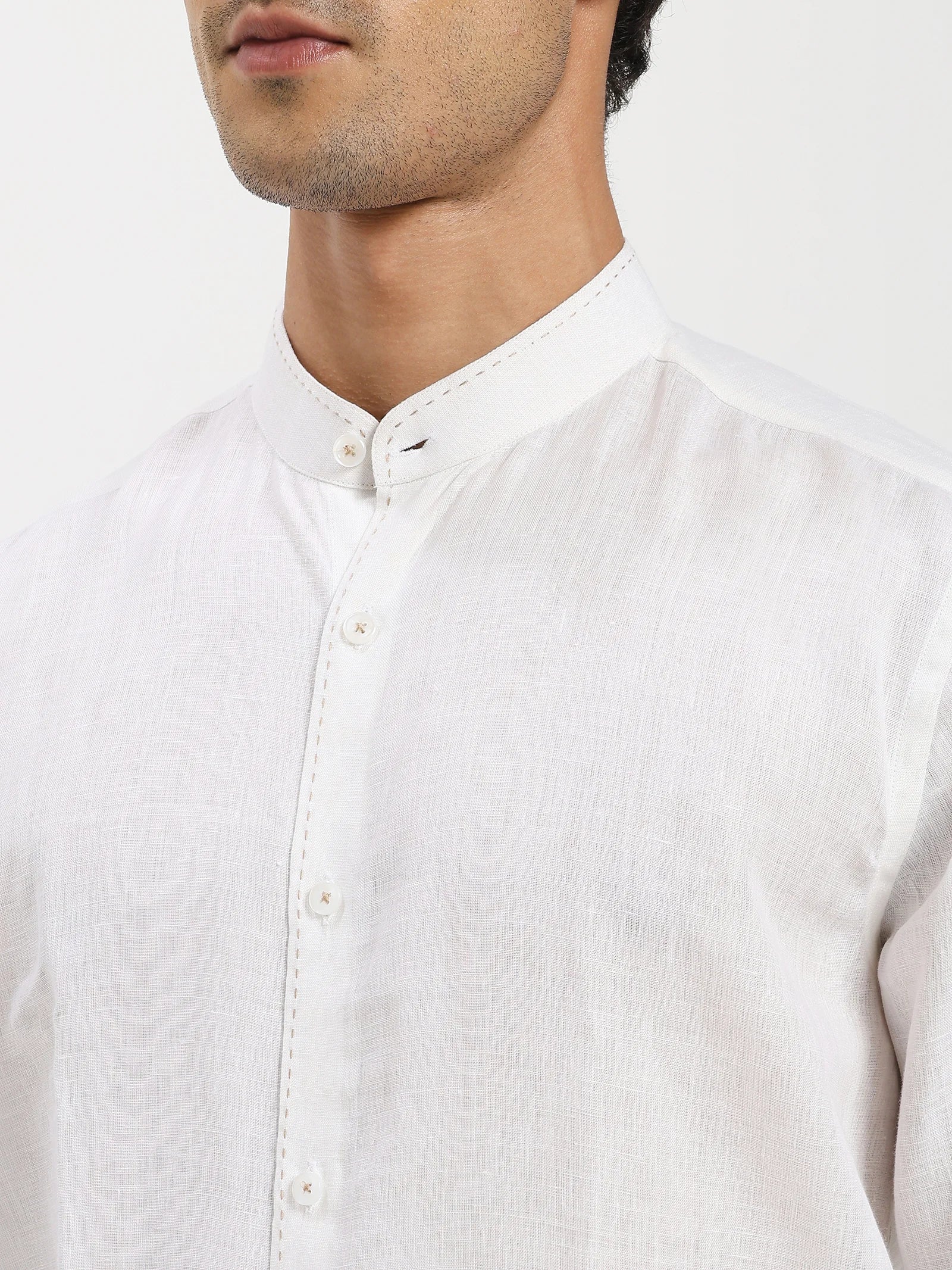 The Luminor Linen Shirt is where timeless craftsmanship meets contemporary refinement. Made from 100% European linen, this shirt embodies the natural lightness and breathability of the fabric while elevating it with subtle yet powerful details. The mandarin collar, highlighted with delicate saddle stitch accents, lends a quiet sophistication that feels both artisanal and modern.