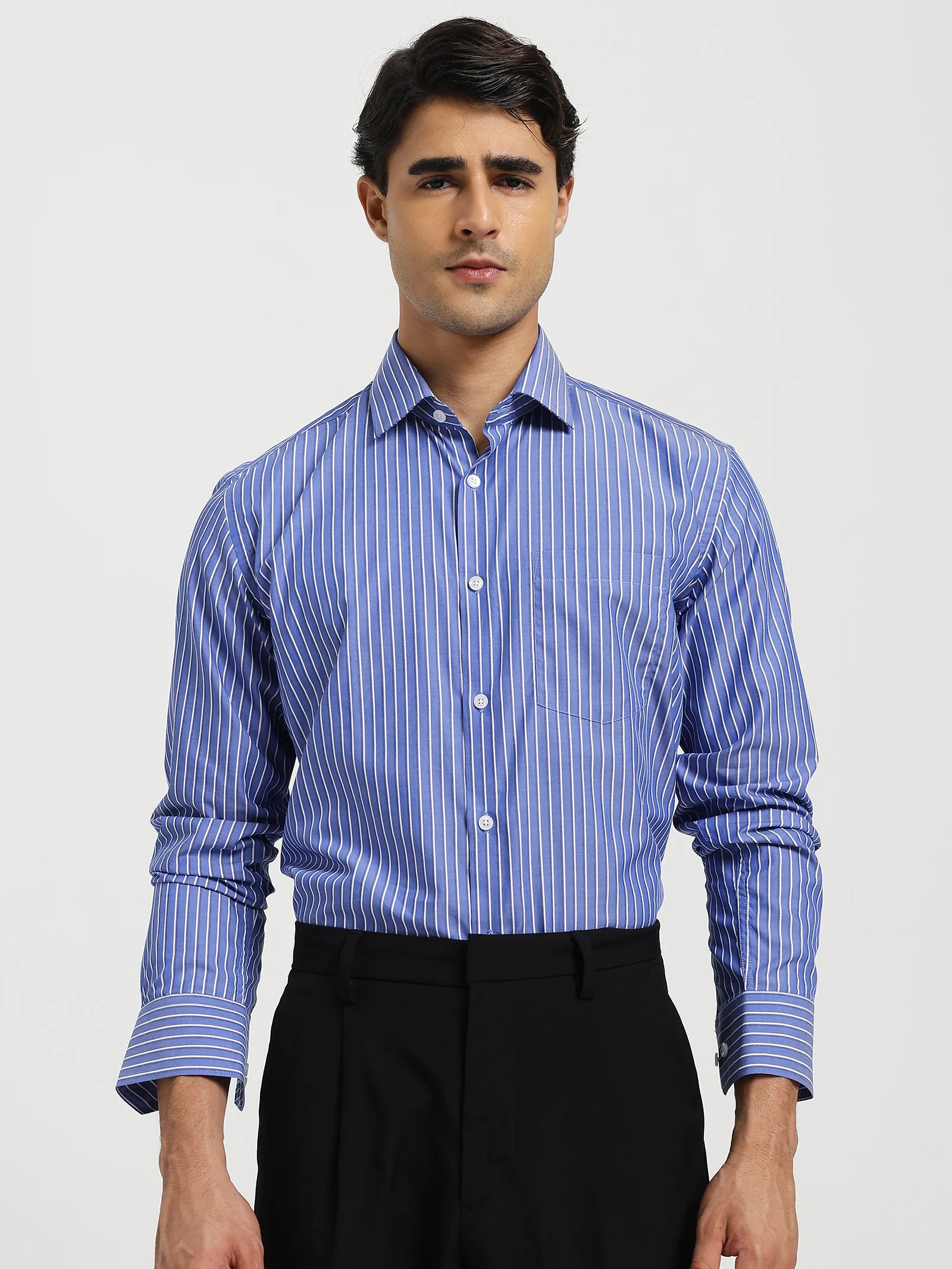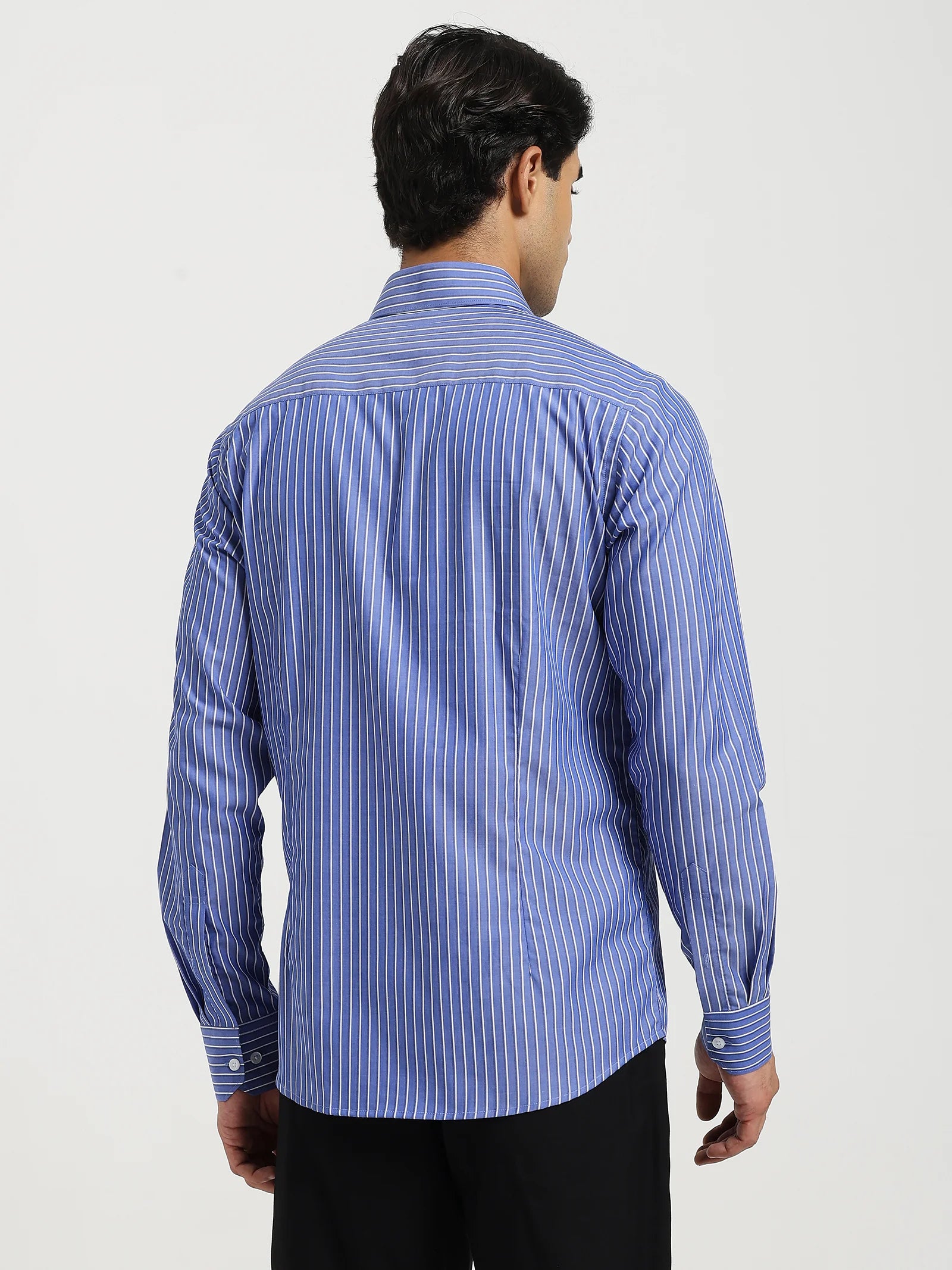 The Marine Pinstripe Classic Shirt is a refined essential for the modern wardrobe. Its crisp blue base, adorned with immaculate white & hint of black pinstripes, delivers a timeless elegance that transitions seamlessly from boardroom meetings to evening engagements. Crafted from premium long-staple cotton, the fabric’s smooth, breathable surface ensures comfort all day while maintaining a sharp structure. The meticulous craftsmanship in stitching, while the durable weave promises lasting form and color through countless wears. A shirt designed for those who value understated luxury and enduring style.