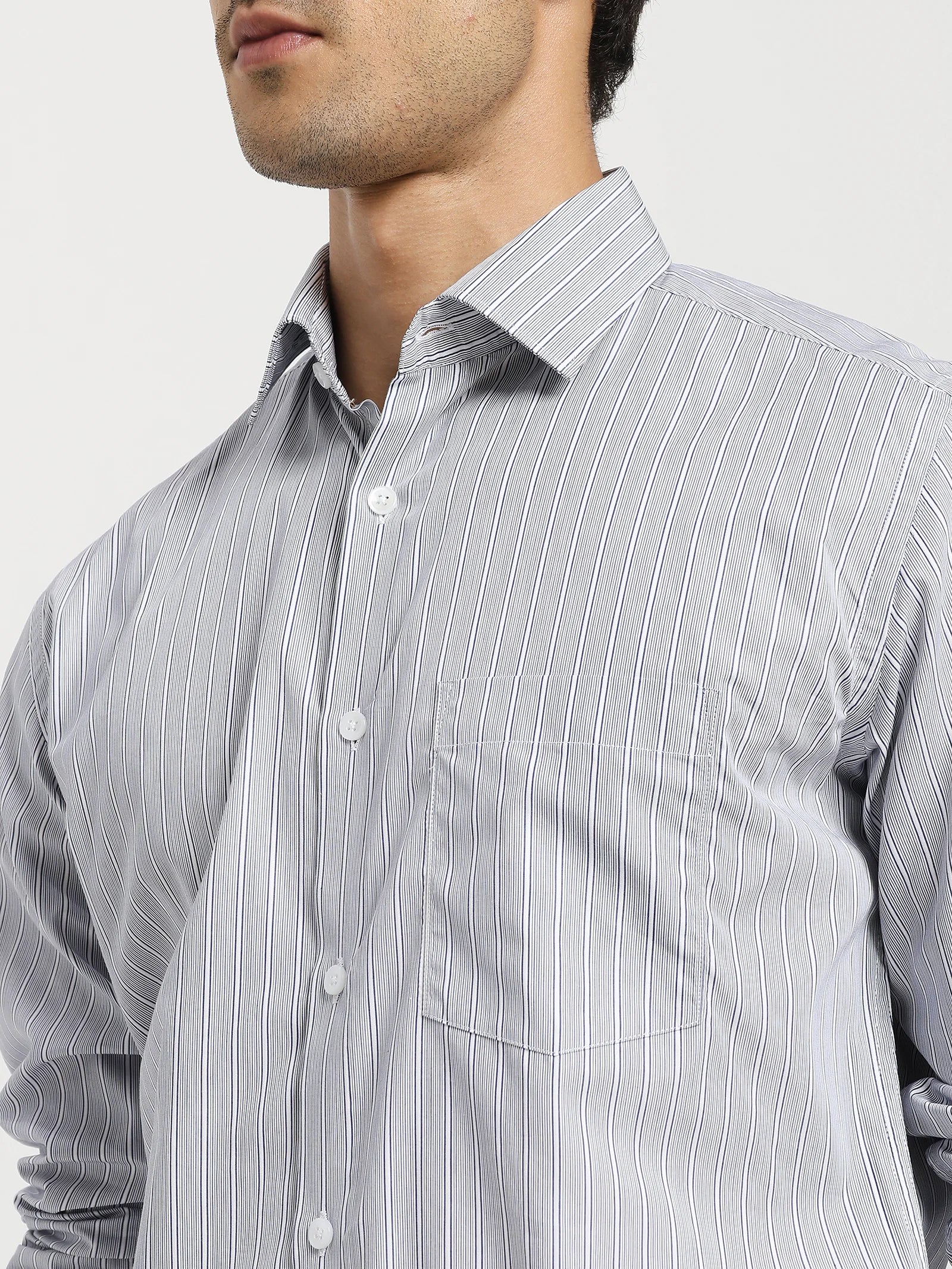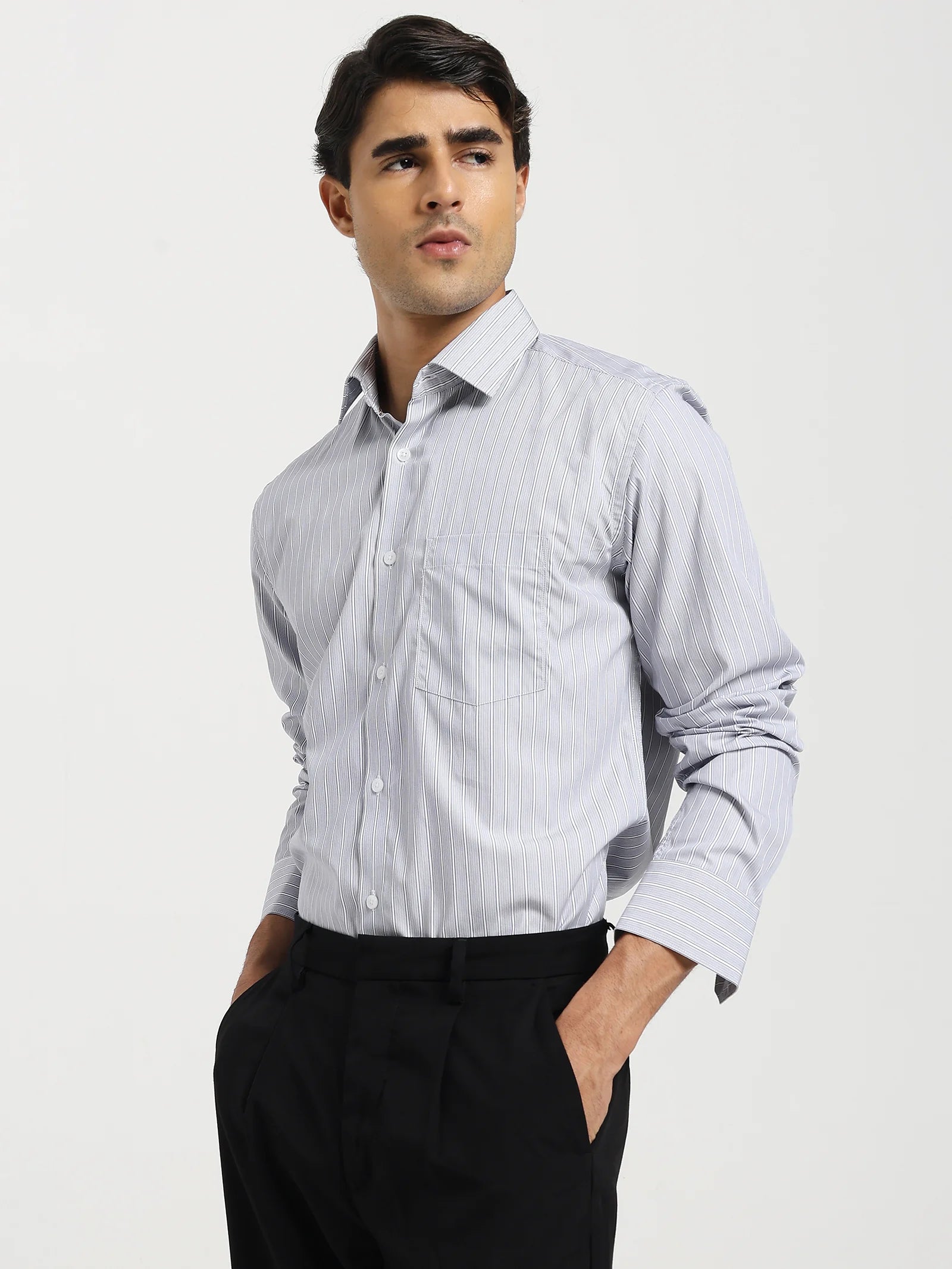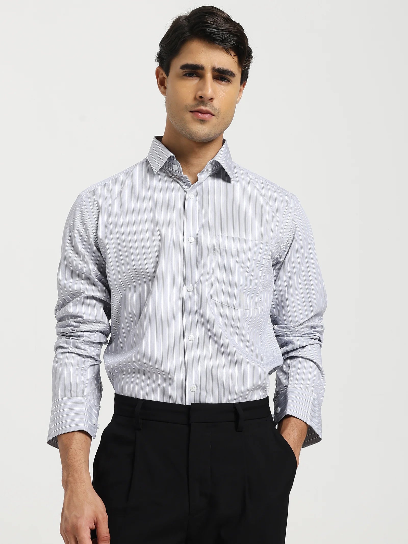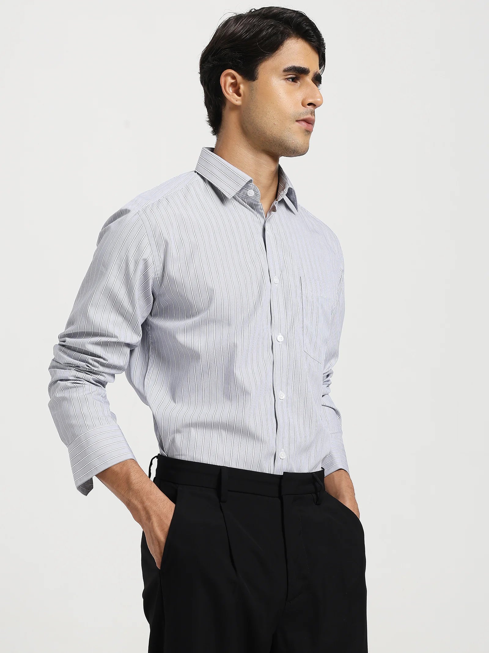 Crafted for the man who values understated elegance, the Maritime Pinstripe Classic Shirt blends precision tailoring with a rich legacy of fine shirting. The crisp white base is elevated by refined navy pinstripes, woven with a balanced rhythm for timeless appeal. Its premium 100% cotton fabric ensures year-round comfort, while the smooth, durable weave promises a graceful drape and longevity through countless wears. A piece that effortlessly transitions from boardroom confidence to evening sophistication, embodying the enduring charm of classic menswear.