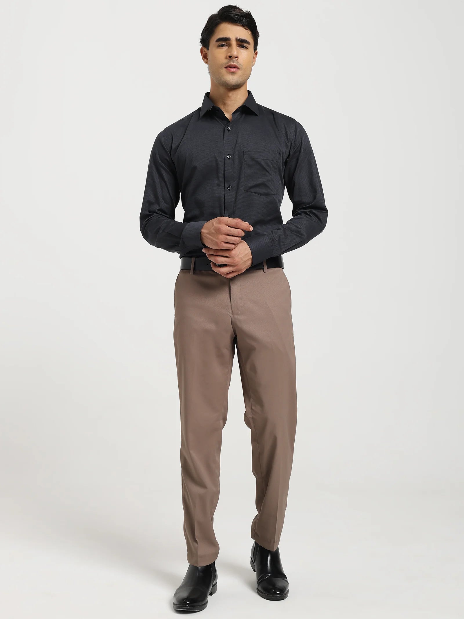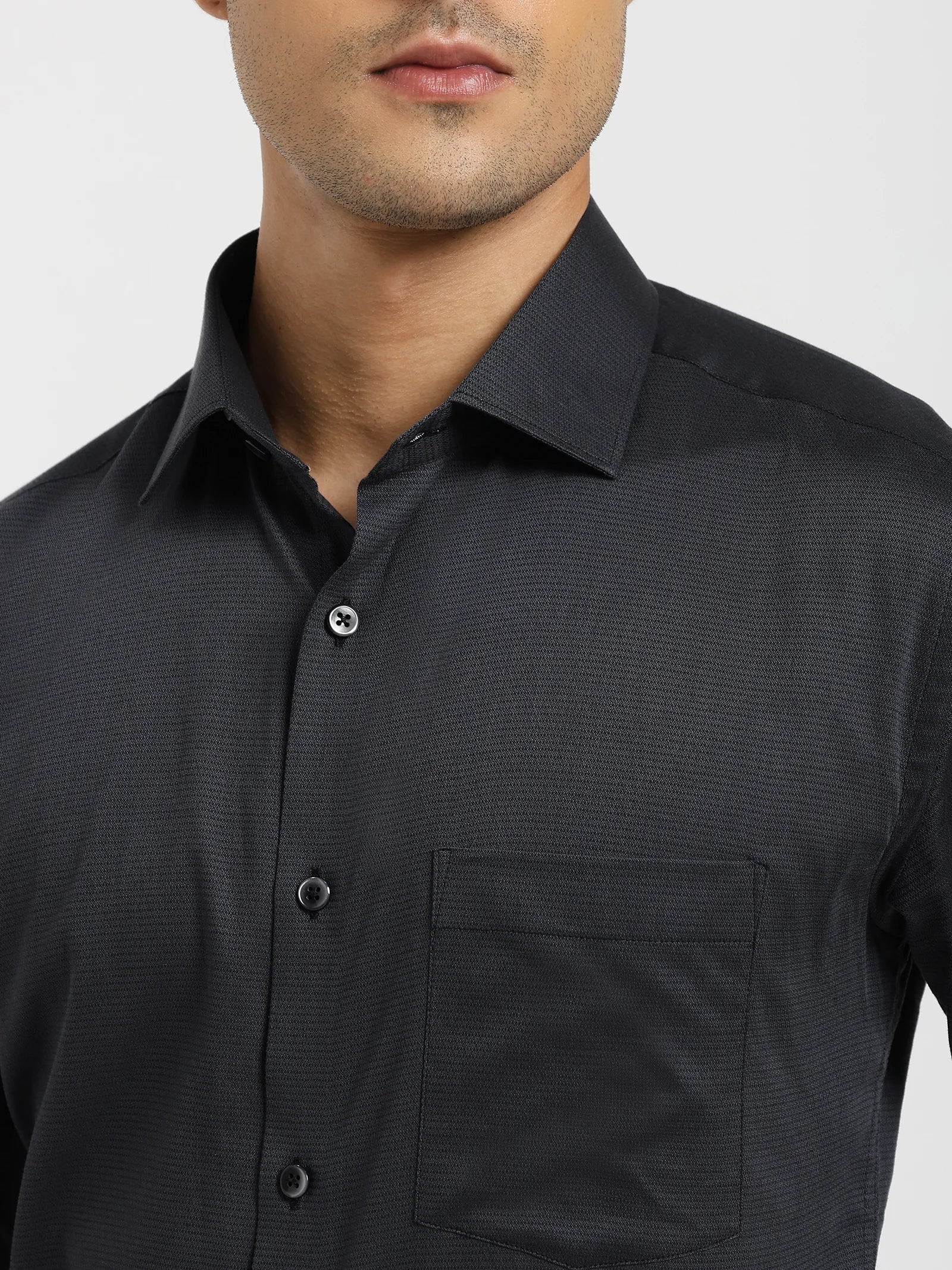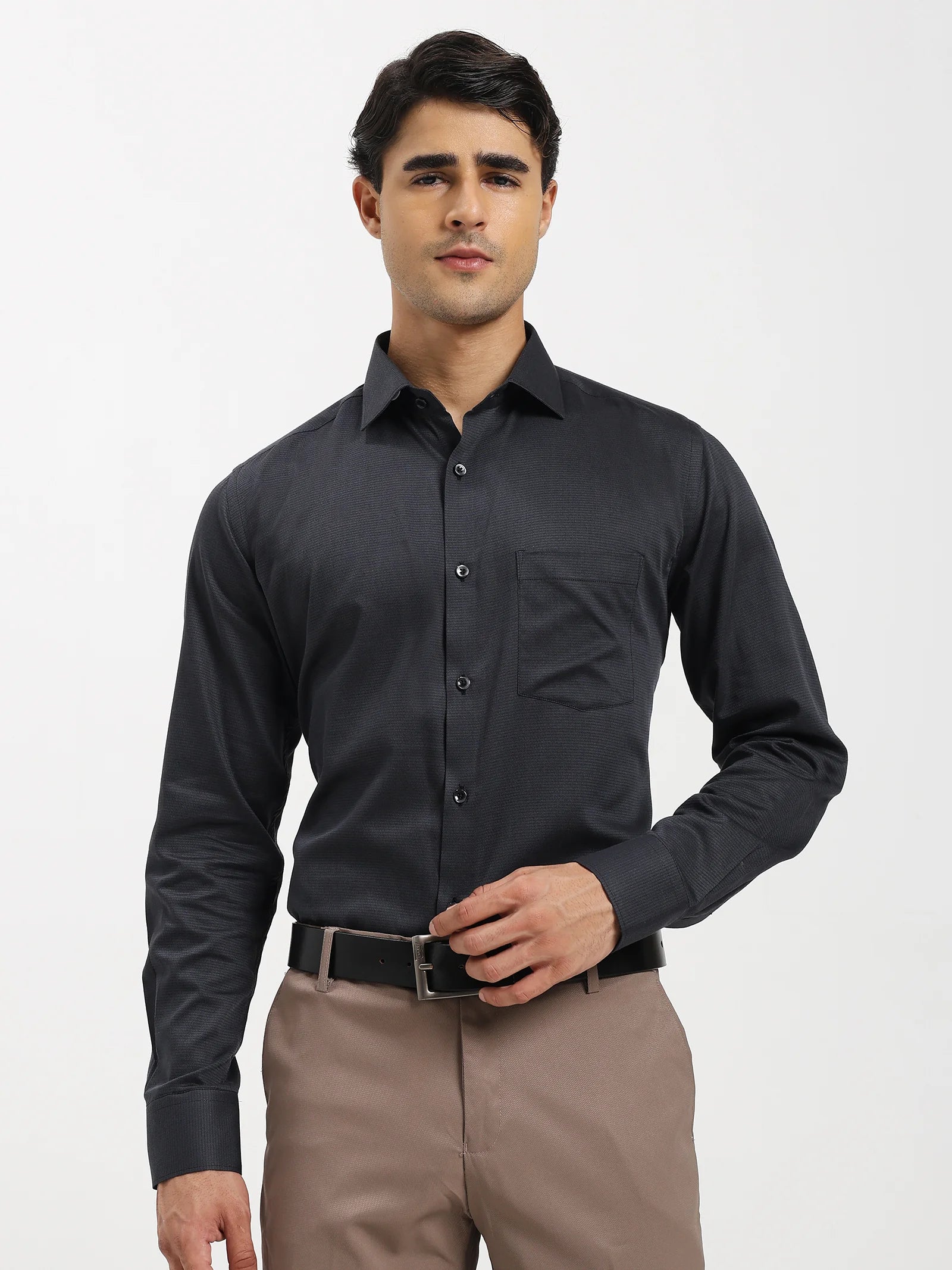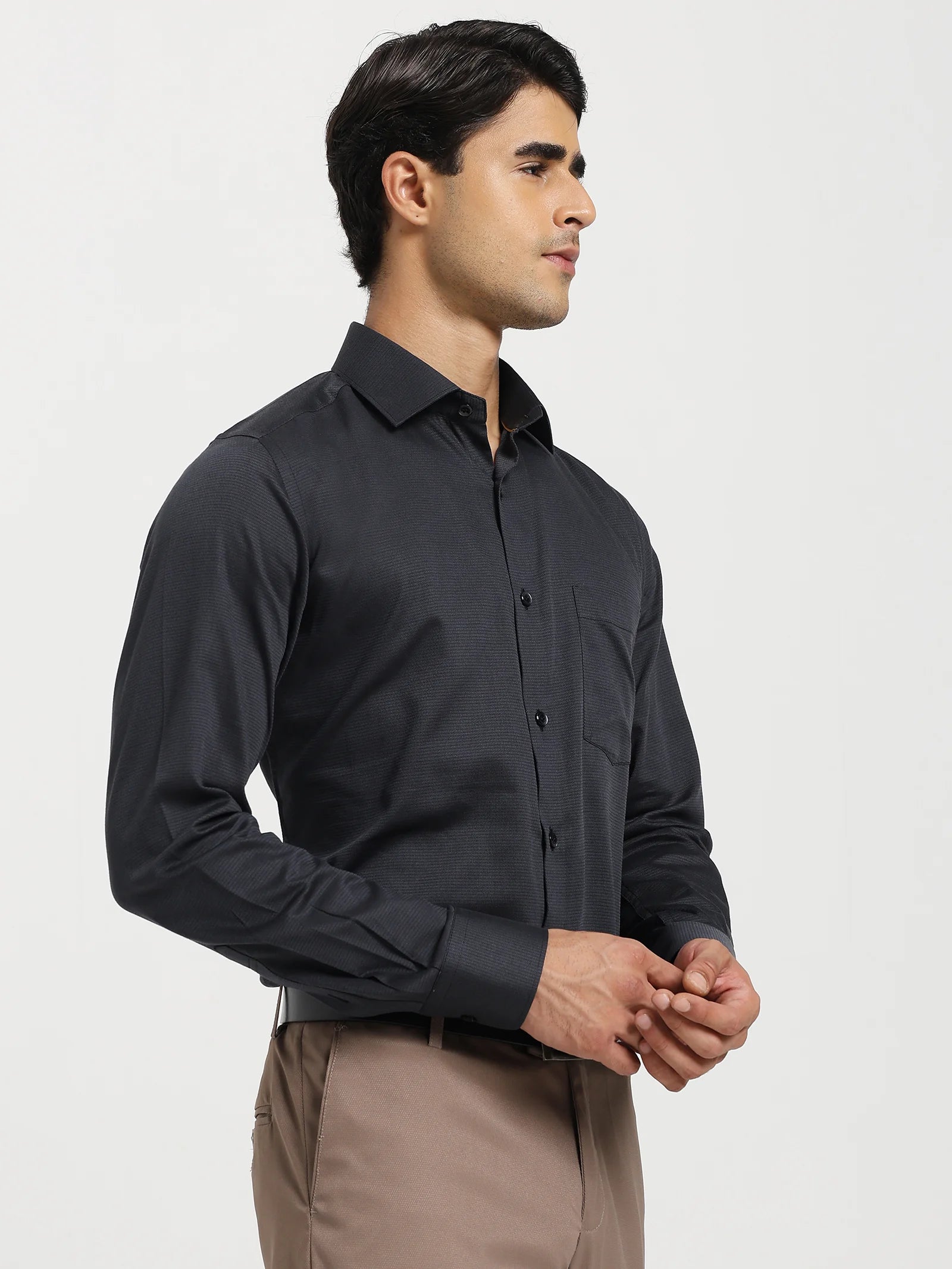 Crafted for the modern gentleman, the Onyx Microtexture Luxe Shirt blends sophistication with enduring comfort. Its deep black hue is enriched by a fine microtexture weave that catches the light subtly, adding quiet depth to your look. Tailored from 100% premium cotton, this shirt offers exceptional breathability while retaining a smooth, polished finish wear after wear. Perfectly structured with a sharp collar, refined placket, and meticulous stitching, it delivers both style and longevity for your most important moments.