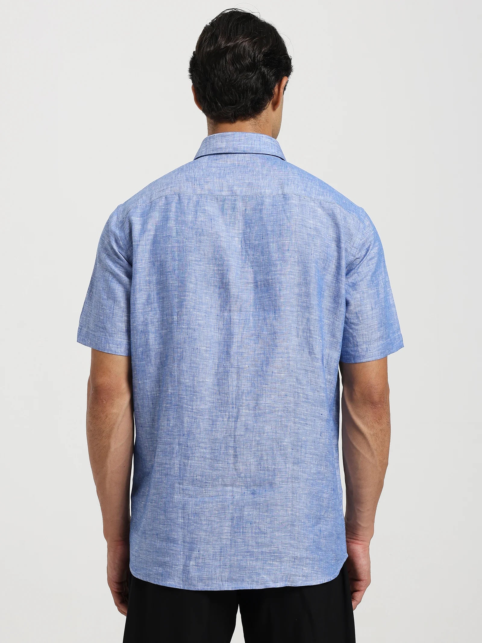 100% European linen, the Skyloom Linen Shirt captures effortless sophistication with a touch of modern detail. Its naturally breathable fabric ensures enduring comfort, while the crisp texture speaks of timeless refinement. The subtle blue hue carries a relaxed elegance, elevated by contrast accents on the collar band and placket, along with thoughtfully chosen contrast-thread buttons. Designed for those who value understated luxury, this shirt is as enduring as it is versatile, making it a wardrobe staple that matures beautifully with every wear.