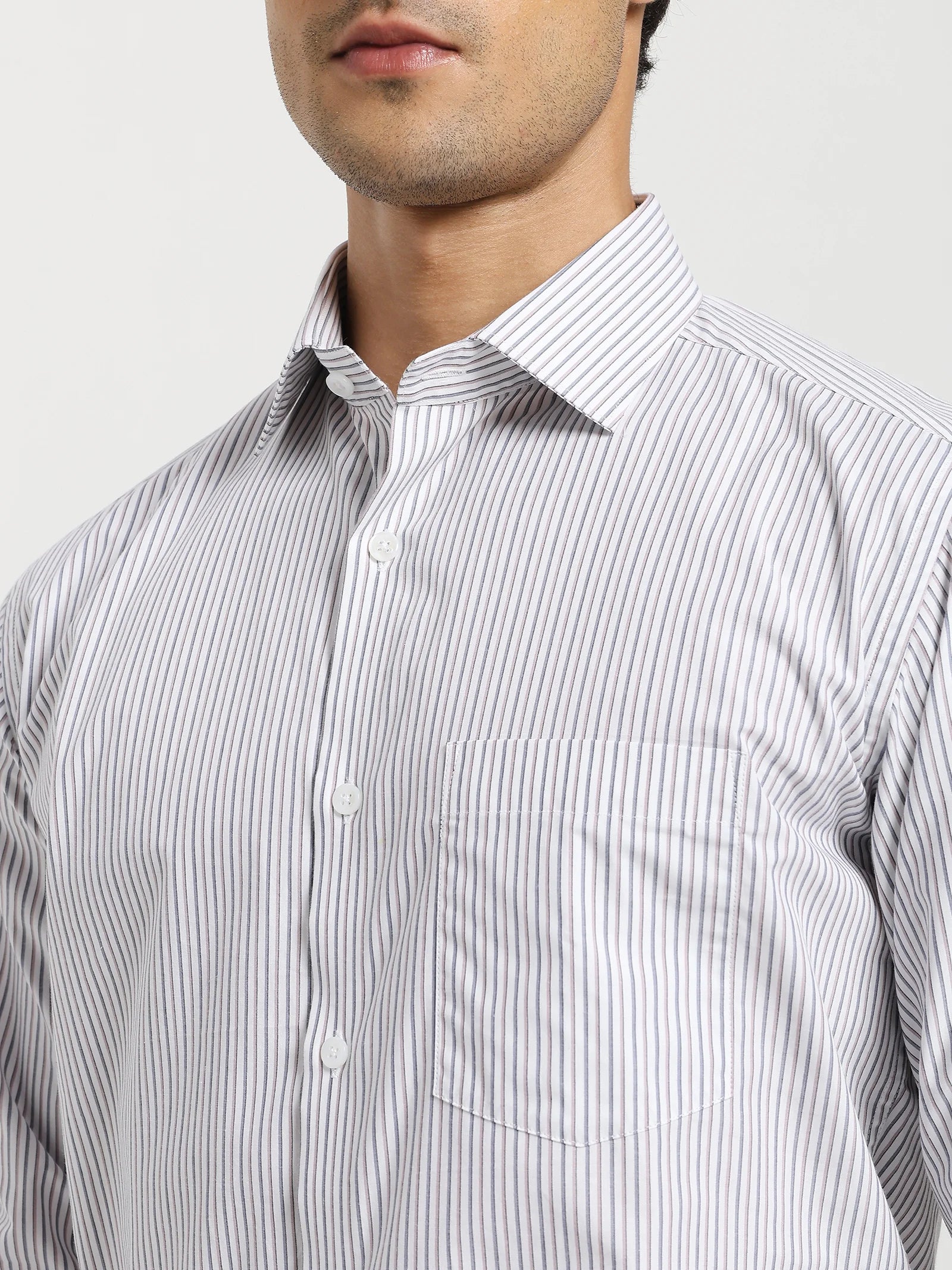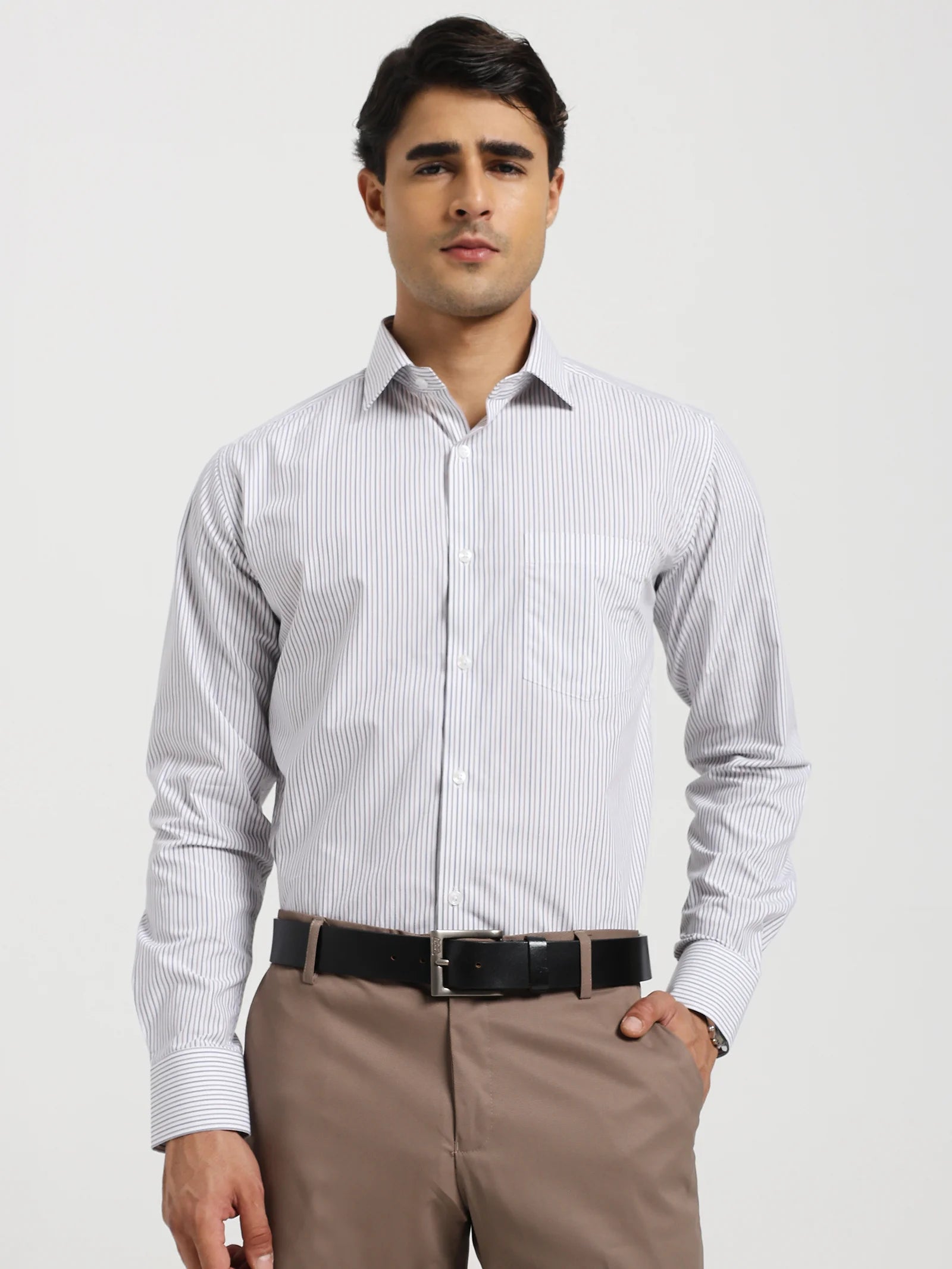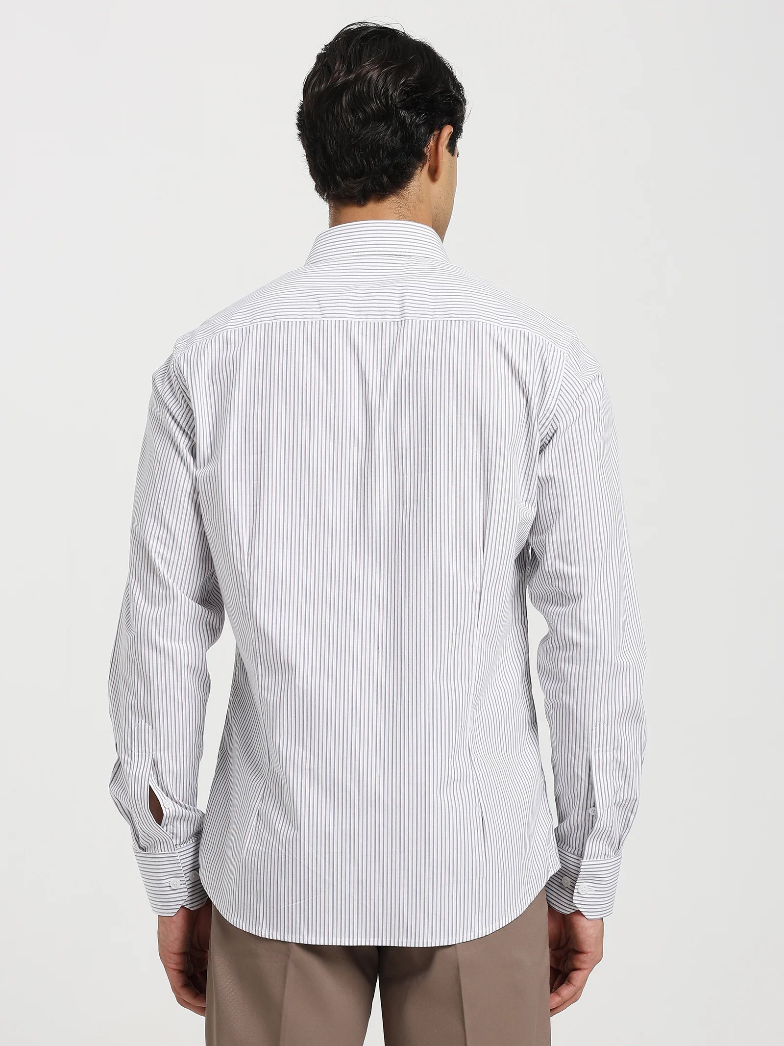 Precision-woven in 100% Cotton, this shirt carries a subtle play of slate and soft rose stripes—an understated nod to timeless taste. Every thread holds its form, offering a drape that stands up to countless wears without losing character. Built for years in your wardrobe, it’s the kind of piece that quietly outlasts trends while speaking volumes about its wearer.
