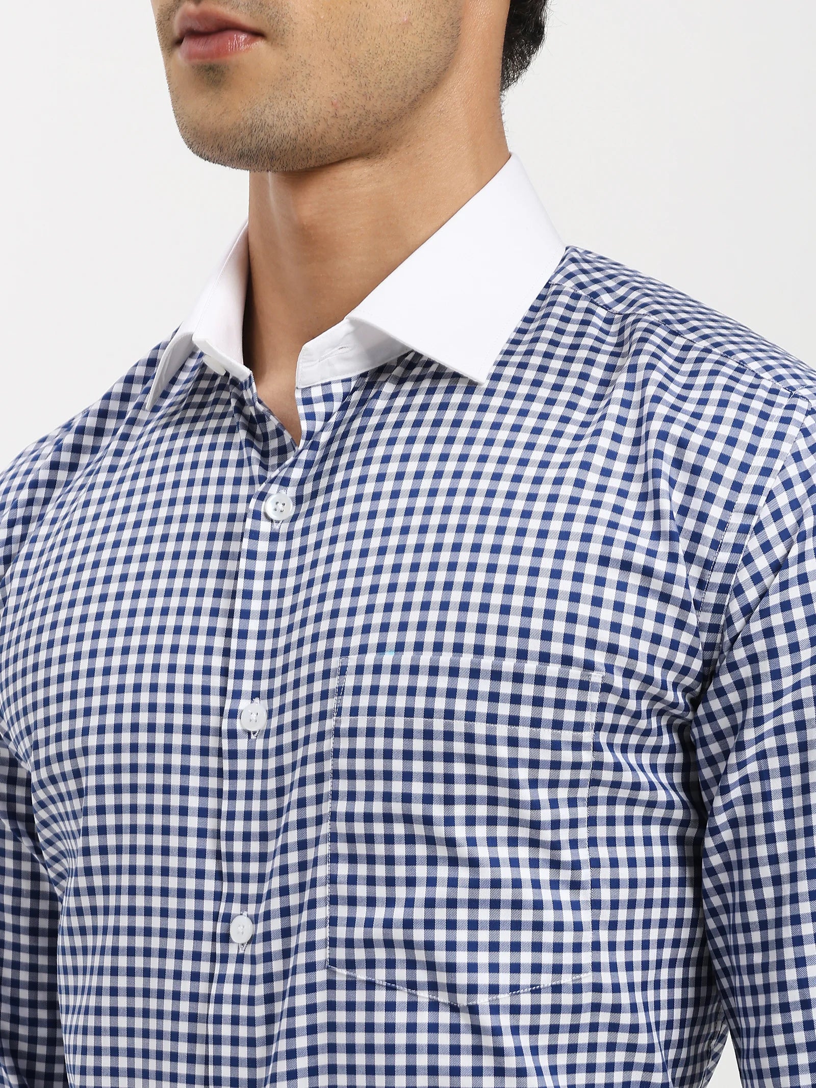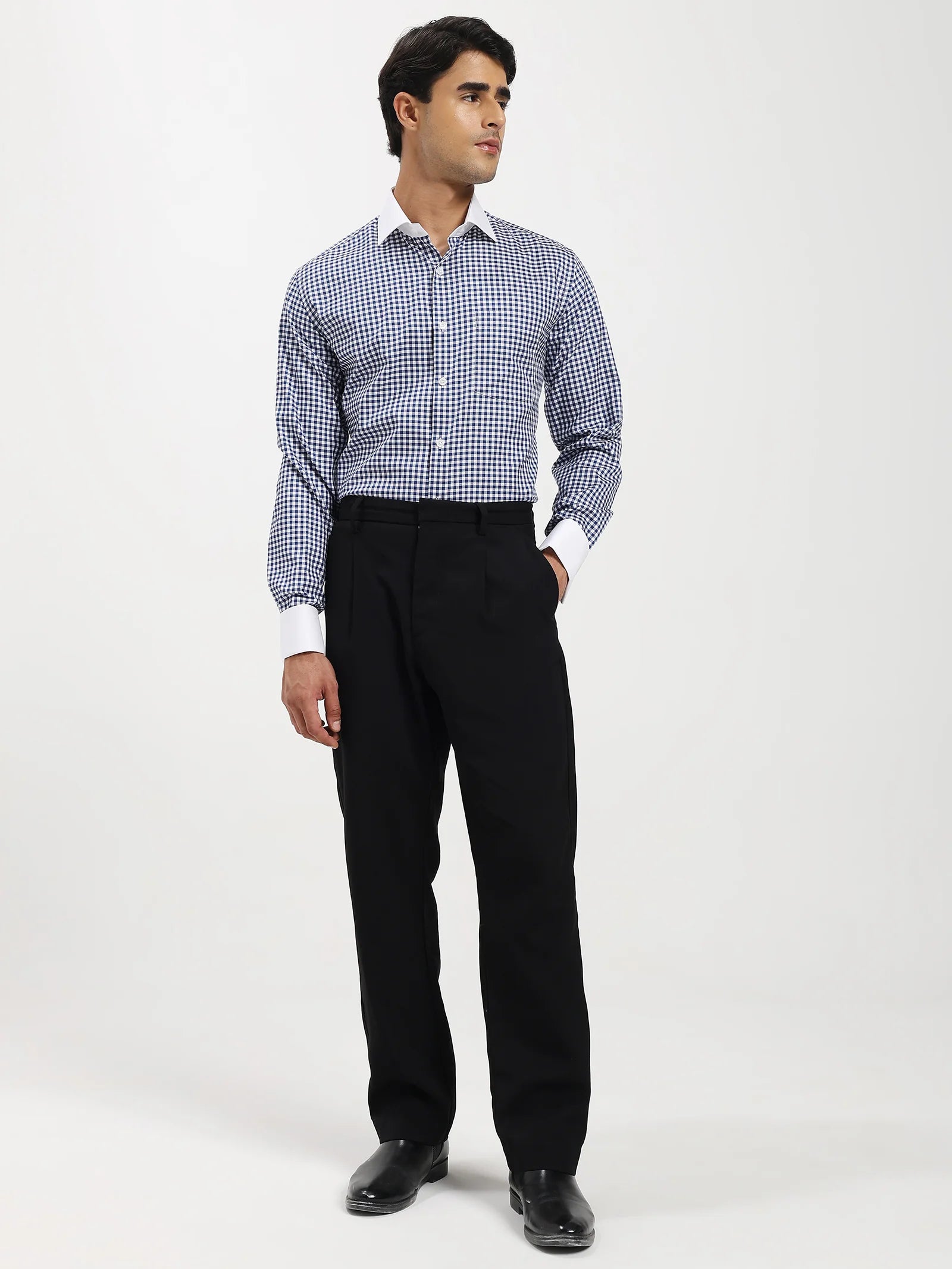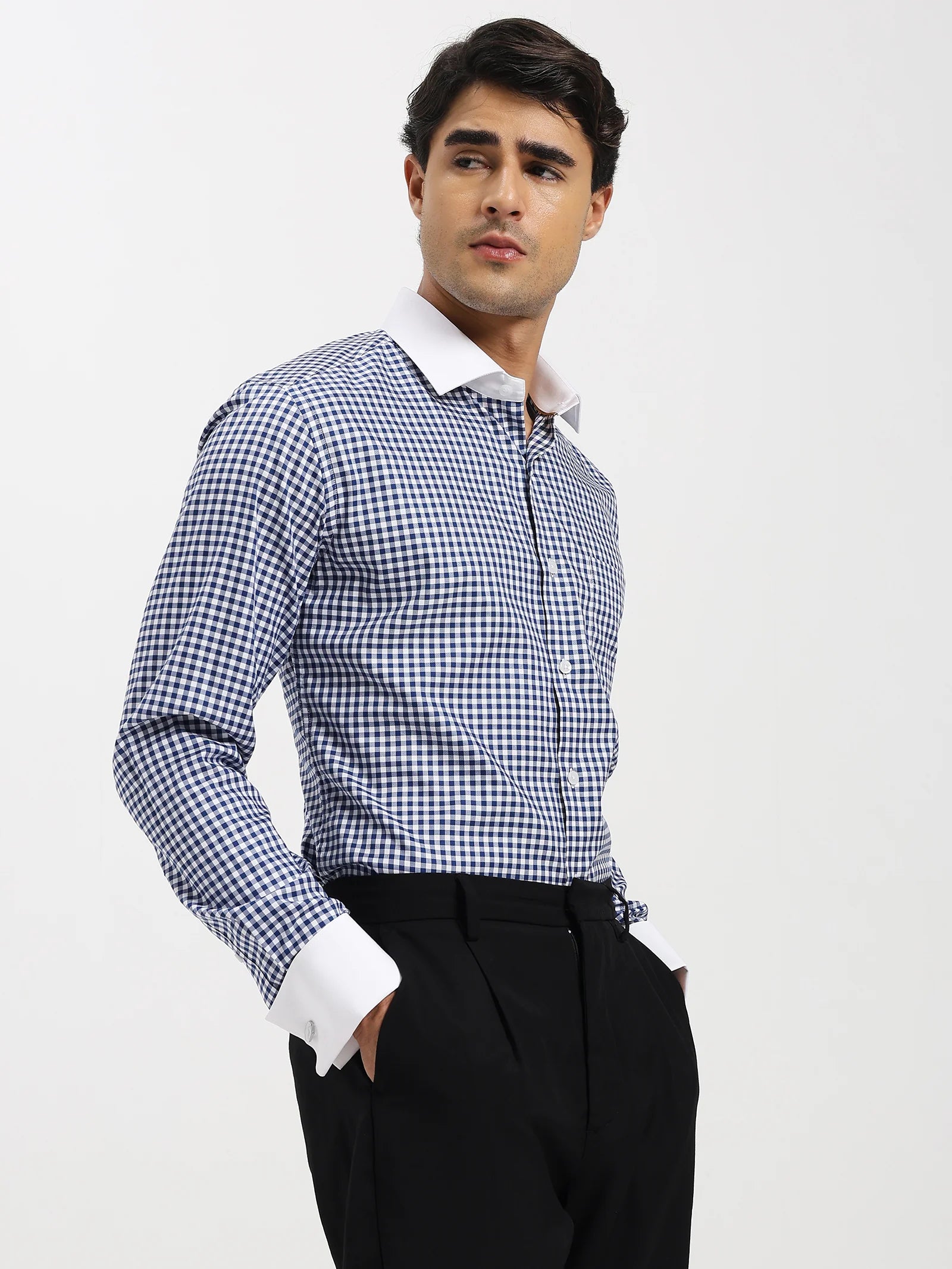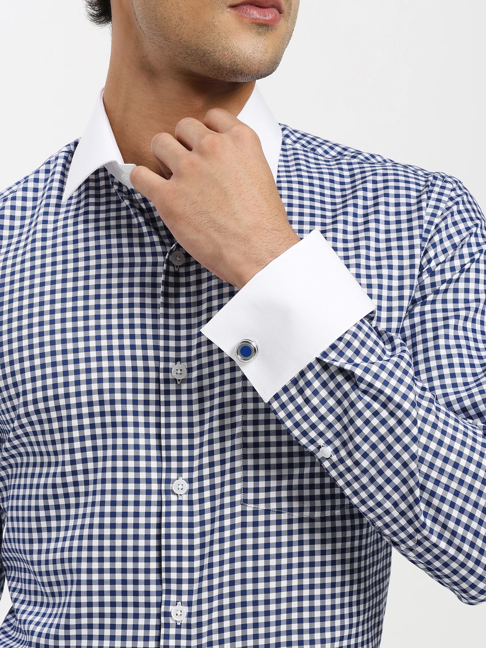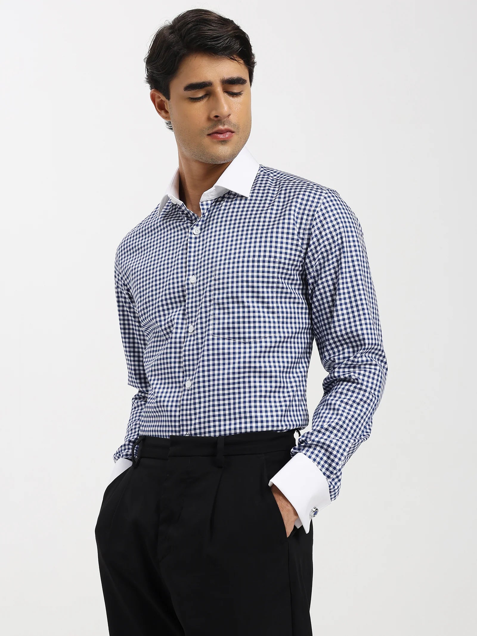 A statement in refined tailoring, the Windsor Navy Check Contrast Collar Shirt embodies timeless elegance with a confident, contemporary edge. Crafted from premium cotton, the shirt’s navy and white gingham pattern is meticulously woven for crisp definition and long-lasting vibrancy. The contrasting white spread collar and French cuffs elevate its formal appeal, making it the perfect choice for high-profile meetings, evening events, or occasions where precision matters. Smooth to the touch yet resilient in structure, this shirt blends sophistication with durability, ensuring it retains its sharp look and flawless drape wear after wear.